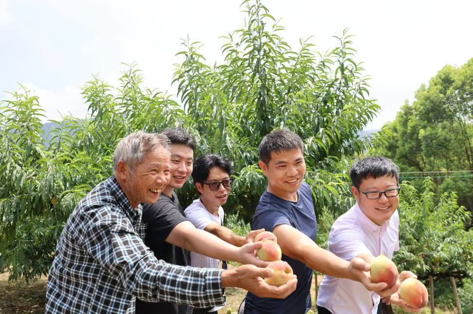 调研接近尾声,果农们还特意准备了新鲜鹰嘴桃,沉甸甸的果实里,是李洞村人最质朴的心意。大家在桃树下合影留念,镜头定格下这张充满欢笑的照片——有负责人的亲切笑容,有果农的淳朴面庞,也有突击队成员的热情共同见证的这份甜蜜。