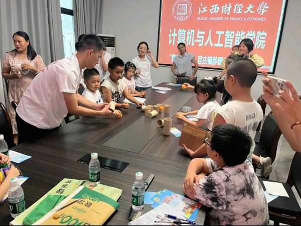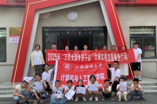 2025年7月17日,江西财经大学计算机与人工智能学院“陶阳童心伴·官庄银龄暖”志愿服务队来到景德镇市昌江区吕蒙街道官庄村新时代文明实践站,为当地儿童开展了一场别开生面的暑期关爱活动。通过课业辅导、安全知识宣讲、趣味游戏等活动,为孩子们送去知识与欢乐,助力乡村儿童健康成长。