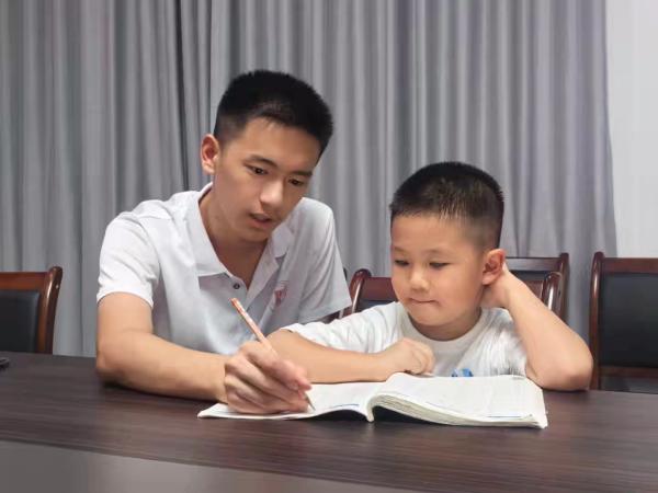 图为实践团成员给小朋友进行作业辅导(陈欣雨摄)