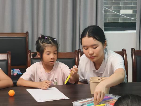 图为实践团成员与小朋友一起进行绘画(陈欣雨摄)