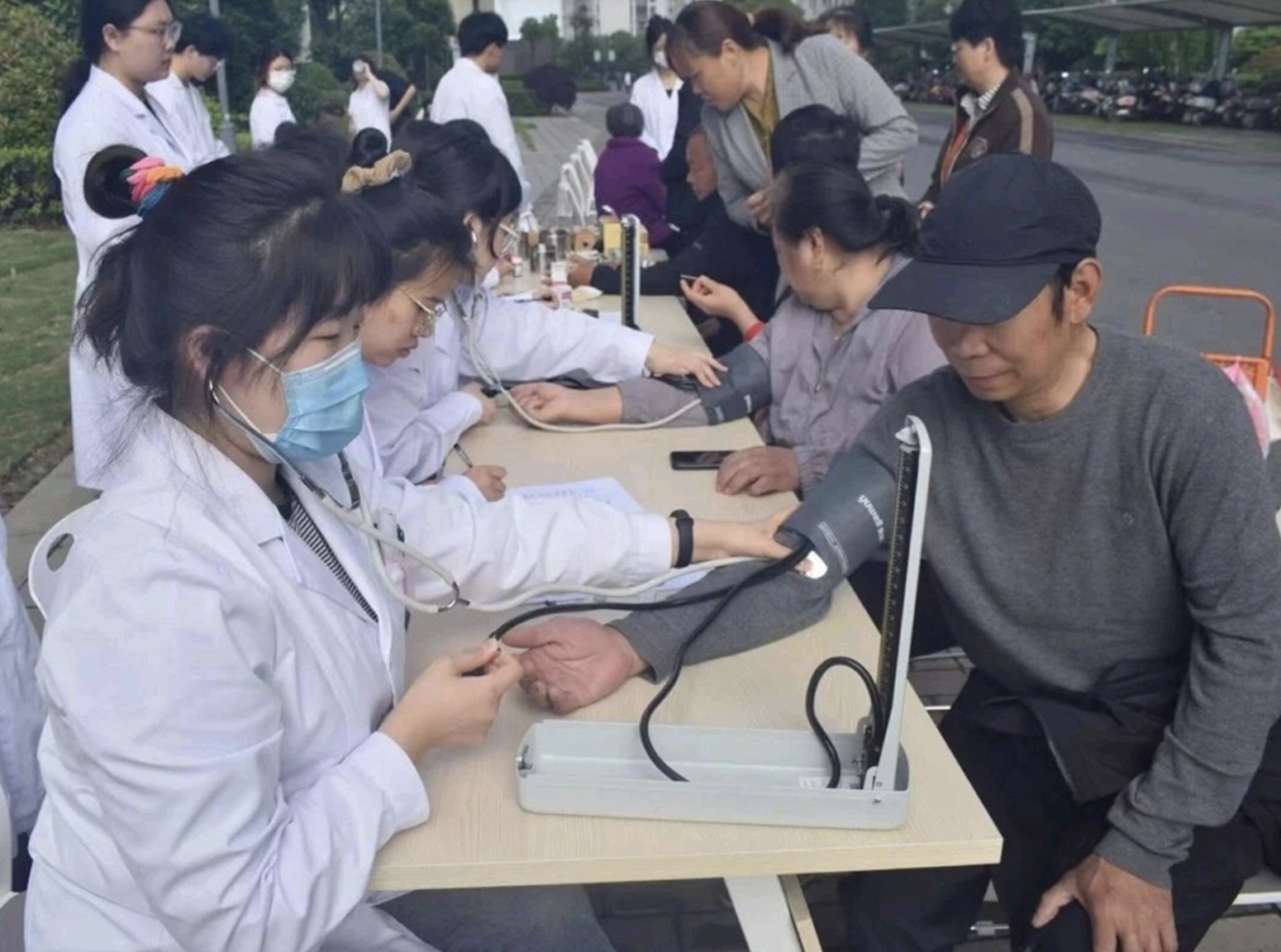 活动首日,实践团队在村里的文化广场设立了临时医疗服务点,为村民们进行免费的基础健康检查。团队成员们身着白大褂,分工明确,有序地为村民测量血压、血糖,听诊心肺,耐心询问他们的身体状况。