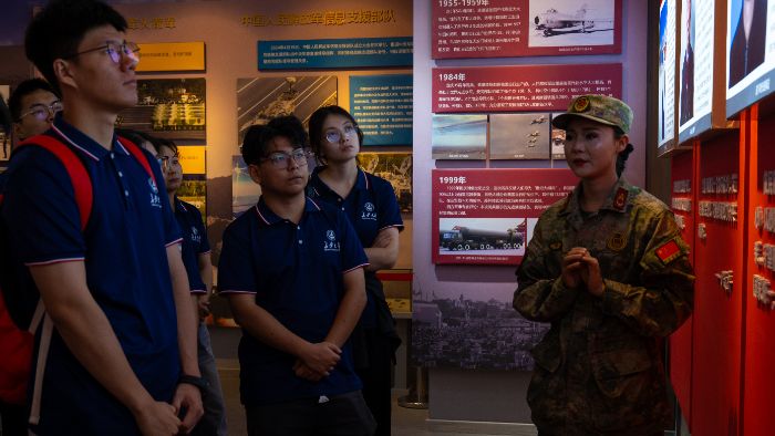 图为实践队员聆听讲解员讲述骑兵连戍边故事(陈嘉楠摄)