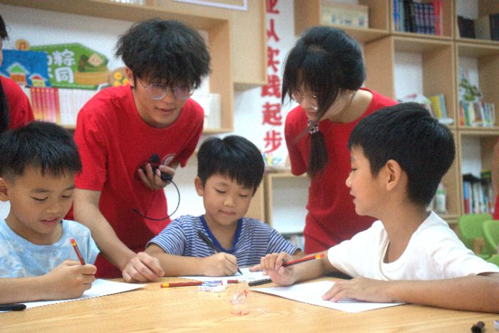 本网讯 为提升乡村儿童的红色教育理念,弘扬讲好中国故事传播中华优秀传统文化的根本宗旨,7月16日—18日,肇庆学院马克思主义学院罗城教育服务突击队与罗定市罗城街道石围社区联合开展了一场以“学党史、知党恩、跟党走”为主题的“红色精神义教行”思政学子送课下乡夏令营活动。