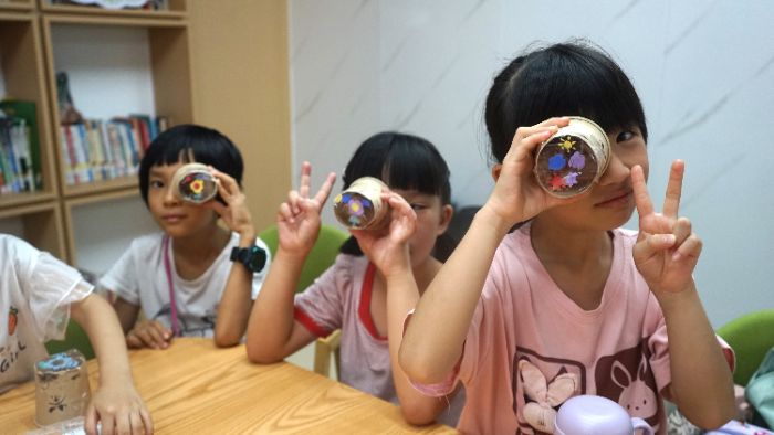 最令人惊艳的是纸杯创意工坊。孩子们裁剪杯底、粘贴装饰、彩绘图案,当作品被点亮时,教室瞬间化作璀璨星河。孩子们兴奋地展示创作,创意火花与爱国情怀在此刻交相辉映。