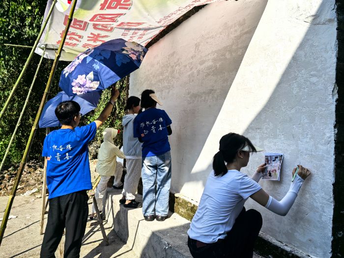 图为实践团成员正在墙绘。唐博文摄