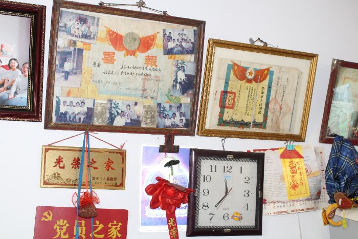 图为抗美援朝老兵获得的“光荣之家”等荣誉。简雨珍摄