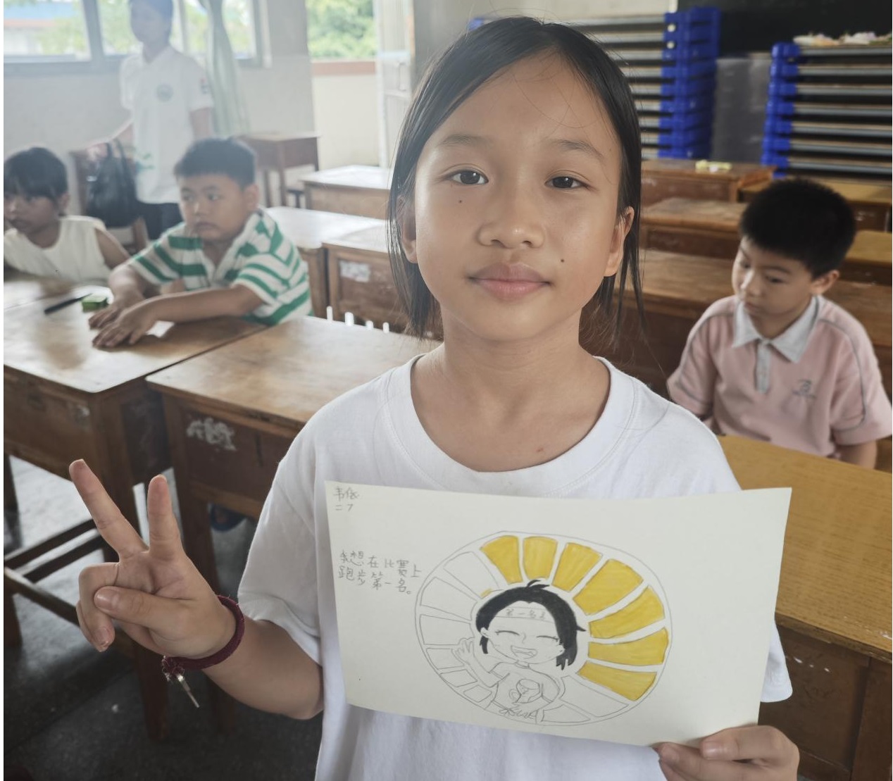 绘画课上,孩子们以“梦想与自画像”为主题展开创作。老师引导孩子们先在草稿纸上勾勒自己的模样——扎着马尾辫的女孩、戴着眼镜的男孩,再用星星、翅膀等元素点缀背景,表达“想成为画家”“想飞向太空”的梦想。课堂上,彩铅与水彩笔在画纸上摩擦的沙沙声此起彼伏。