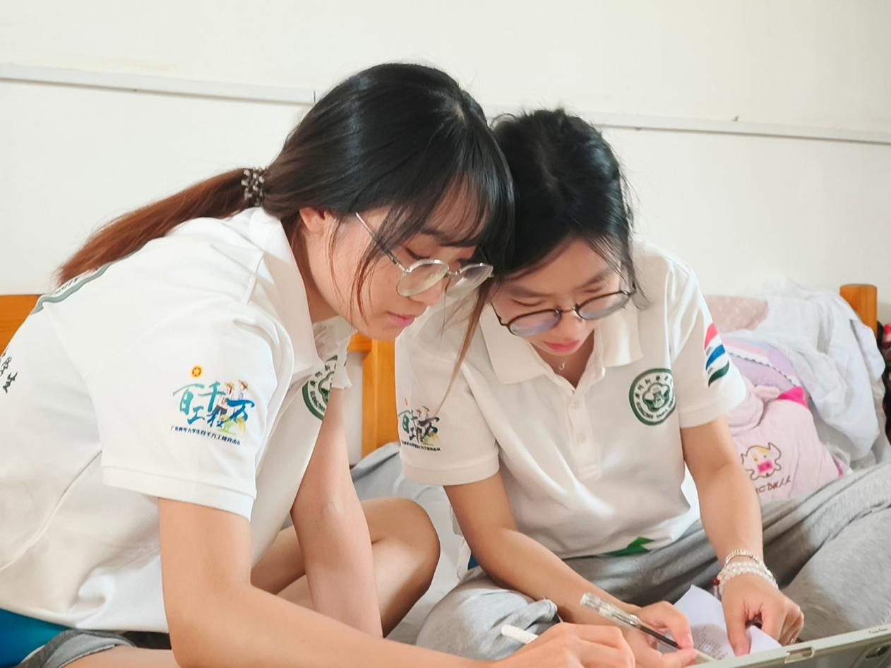 (图为两位话剧老师在宿舍商讨教学方案。 廖羽嫣 供图)