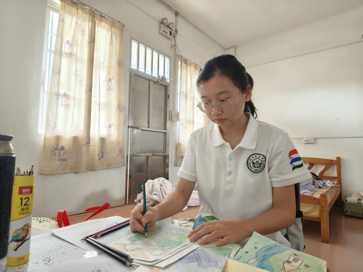 (图为绘画班老师在宿舍备课。 廖羽嫣 供图)