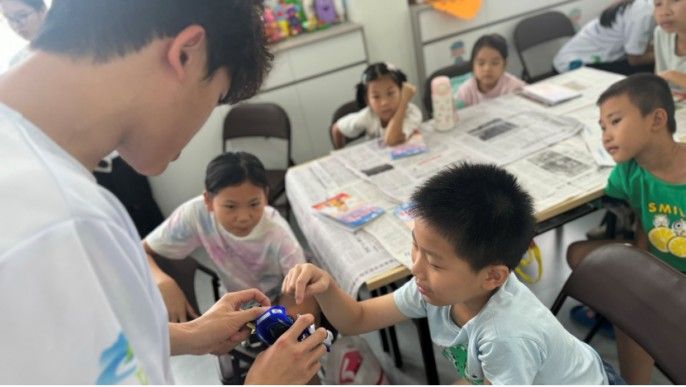 深耕乡村沃土:科普启智与文化铸魂双轨并行黄洞村课堂内,实践团化身"梦想播种者":爬墙机器人揭秘现场,科技星火在孩童惊叹中点燃;蜡笔绘就的"心树"拔节生长,托起乡村未来愿景。村史故事娓娓道来,文化根系深植乡土记忆。"科普实验与村史课堂的双向滋养,正是南粤改革先锋线'创新驱动+文化赋能'理念的微实践。"团队成员如是说。