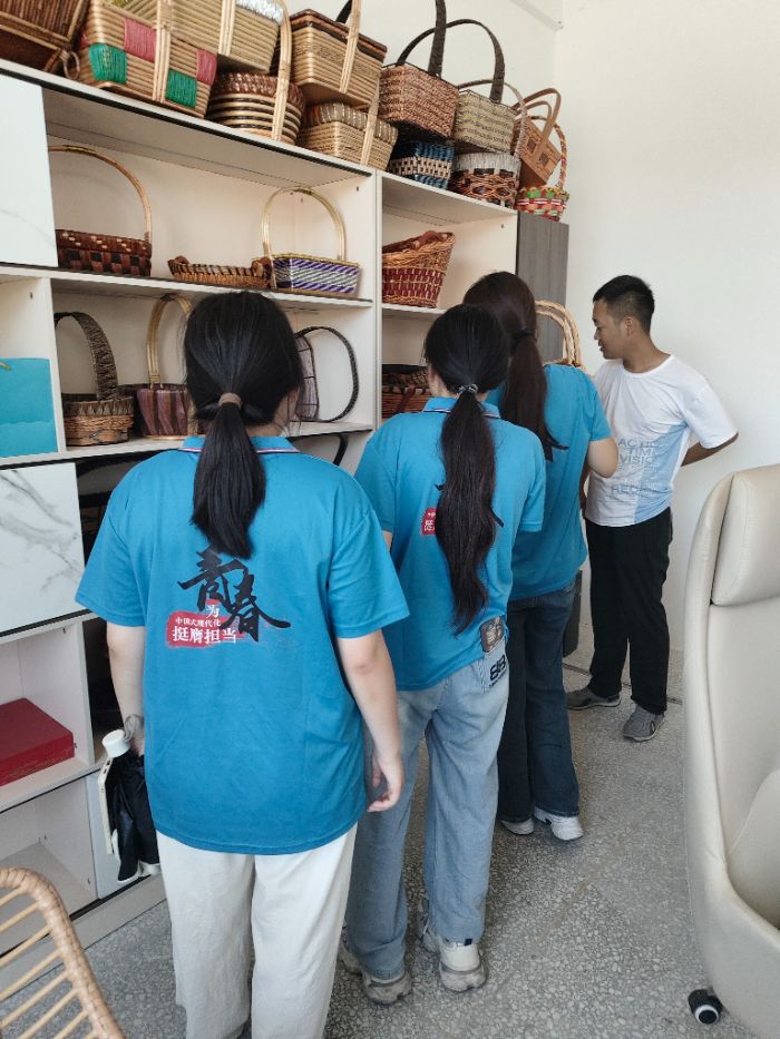 实践团成员们凝神聆听,不时停下脚步仔细观察展品细节。参观结束后,成员们不禁感叹:“原以为柳编只是简单的手工劳作,今日才知晓,其背后竟蕴含着如此深厚的文化内涵,每一件作品都堪称姜庄村历史的生动缩影。”在后续交流中,实践团了解到姜庄村柳编面临的传承困境与创新举措,成员们结合专业,与吴师傅深入探讨柳编数字化推广与保护方案,希望借助技术力量,为传统技艺的传承与发展保驾护航。此次参观,让团队深刻触摸到姜庄村柳编的文化脉络,也激发了他们以专业知识守护非遗的坚定决心。