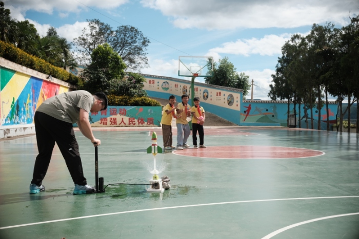 此次水火箭科学实践课程,以趣味实践为桥,让偏远地区的孩子们触摸到航天科技的温度,更在动手协作中埋下了科学探索的种子与家国情怀的根芽。云南校友会的教具支持与支教队员的精心设计,不仅让“航天梦”走出课本、落地生根,更以“做中学”的方式,培养了孩子们的团队意识与创新思维。彩云青藤支教队队长王淮铎表示:“我们希望通过这次支教,让山里的孩子们感受到科技的魅力,激发他们的求知欲和探索精神。”队员赵子鑫补充道:“除了科普课程,我们还准备了心理健康辅导、艺术启蒙等内容,希望能全方位陪伴孩子们的成长。”