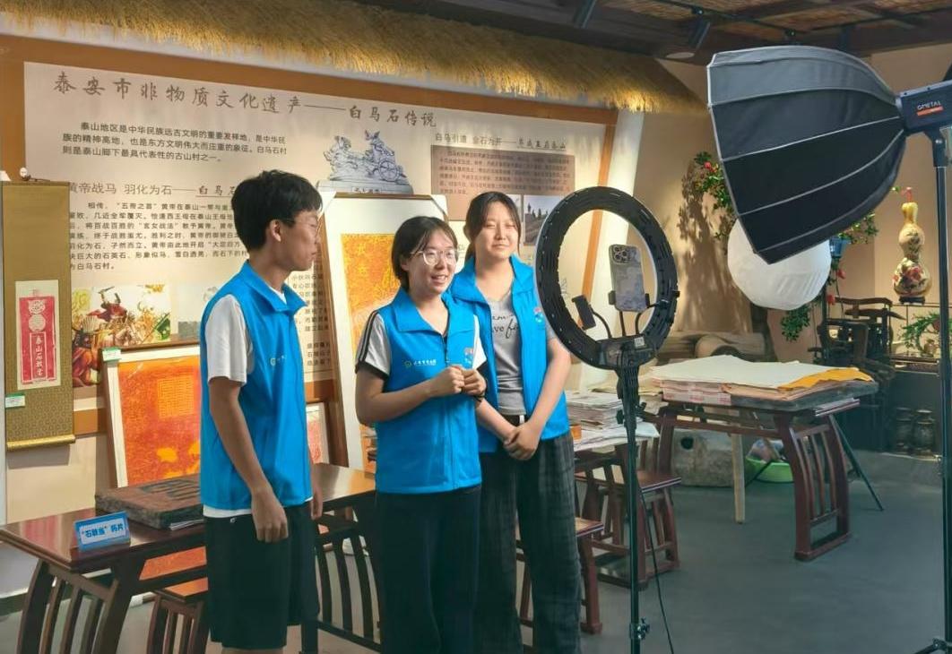 最让人惊喜的,是村文化活动室里的非遗拓片体验。“先把宣纸铺平整,鬃刷要轻轻打,力道匀了才能显出纹样……”当地非遗传承人耐心地示范着,同学们围在桌前,屏气凝神地模仿。为了更好地传承这项非物质文化遗产,本团队将“指尖上的传承”通过直播镜头传到了千里之外,吸引了超过千名师生在线观看。队员张永志举着手机调整角度,笑着说:“没想到咱们在村里玩拓片,能让这么多人看见白马石村的美!”