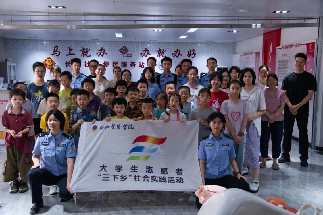 七月盛夏,青春如火。为深入推进国家通用语言文字普及工作,助力社区青少年提升语言应用能力与文化素养,6月 30日至7月11日,江西警察学院“警色年华”实践团先后走进南昌市红角洲街道长云社区及新蓝苑社区,开展了以“推广普通话,共筑文明城”、“推普助力成长”为主题的暑期“三下乡”社会实践活动。警校学子们充分发挥专业特色与青春智慧,为社区青少年打造了一场场兼具知识性、趣味性与文化深度的普通话学习盛宴,在童心中播撒下文明沟通的种子。(通讯员 高锦鹏 汪嘉豪)