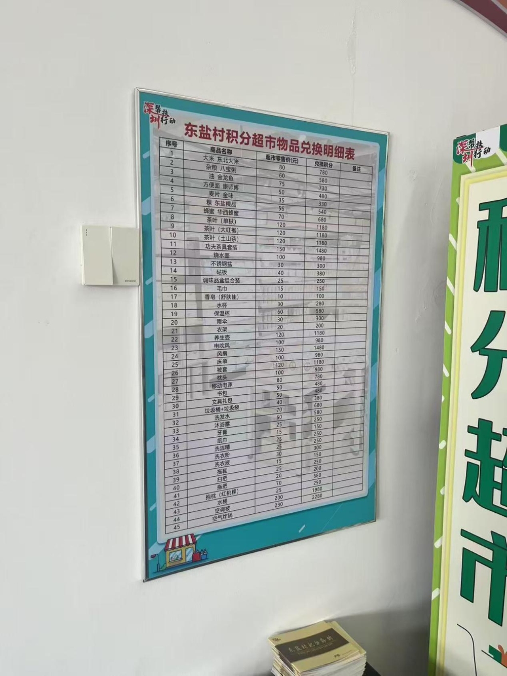 当实践团成员来到东盐村党群服务中心,她们发现,一本不起眼的《积分超市细则》却记录着乡村治理的巧思。2023年9月起,东盐村试点推行积分制,创办了积分超市:村民参与环境整治积10分,调解邻里纠纷积20分,获评“文明家庭”积50分……积分可跨村通用,兑换米油或文具。“以前动员村民扫地要靠反复劝说,现在活动通知一发,大家抢着报名。”东盐村党总支书记指着积分超市说。2024年初的“小手拉大手”环境整治活动中,40名村民和学生志愿者清运垃圾20余车,小学生们捧着积分卡笑逐颜开,等着兑换笔记本和铅笔。 据深圳驻镇帮扶队工作人员透露,接下来将在“积分通”的设计基础上,进一步开发积分APP,让数字技术深度激活乡村治理。