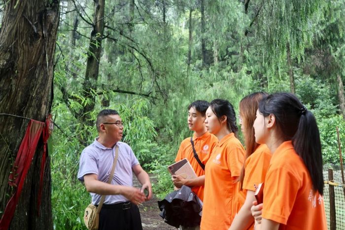 图为龙忠会长带领服务队考察白溪关历史遗迹 张慧敏摄。