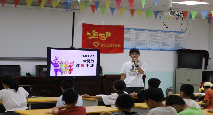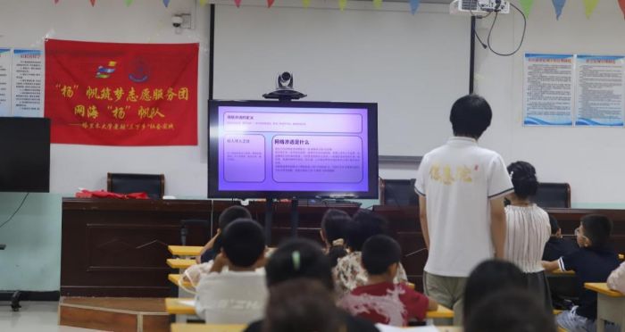 图为“杨”帆筑梦志愿服务团成员进行网络安全宣讲。康雯萱供图