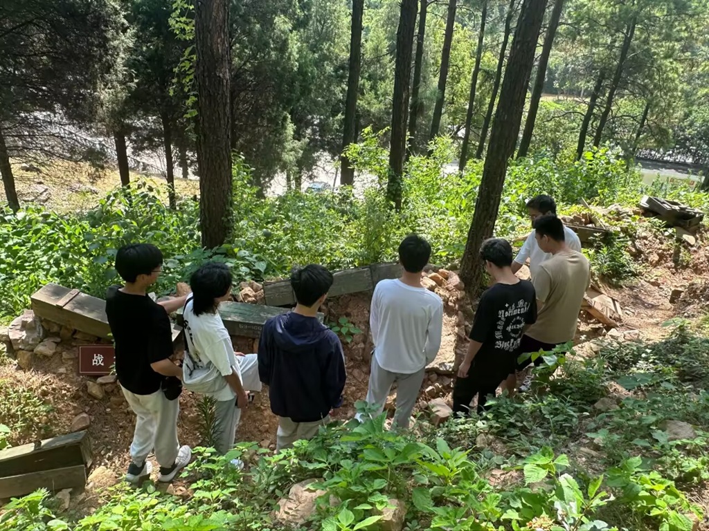 图为实践团成员们亲身感受抗战时战壕的重要性。李嘉琪 供图