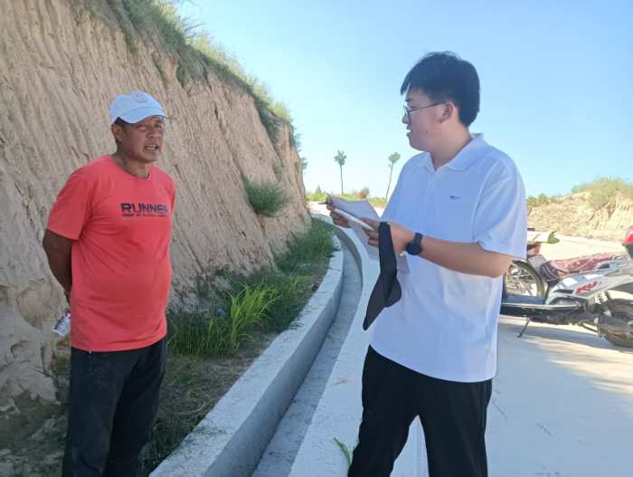 面对沟壑纵横、土地零碎化的困境,薛家河镇近年来大力推进坡耕地改造与撂荒地整治。实践队员们先后前往朱麻硷、薛家河、薛家坪、周家桥、雷家坪等5个村庄的土地展开深入调研。“很难想象,几年前这里还是零散的小块坡洼地和撂荒地”。调研队员庄立鑫手持问卷,站在开阔的梯田埂上感慨道。