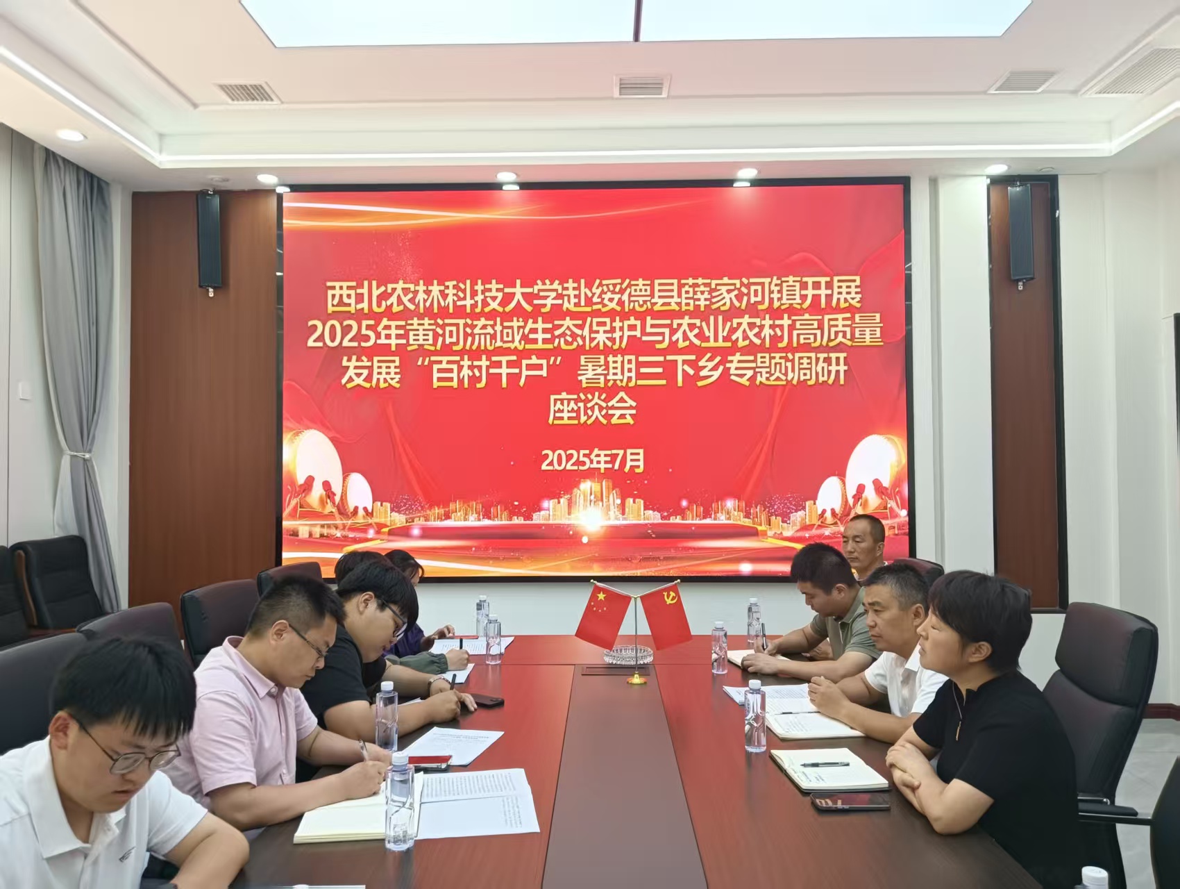 图为实践队与薛家河镇党委书记、镇长、村支书代表等展开座谈交流。庄立鑫供图。