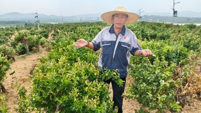 实践队来到了中平药业旗下的金银花种植基地。一踏入基地,漫山遍野的金银花映入眼帘,淡淡的花香弥漫在空气中,沁人心脾。基地负责人史先生向实践队详细介绍了金银花的品种培育情况,“四季花”植株紧凑,一年可采收四茬,亩产稳定在300公斤上;“红金银花”枝条舒展,香气物质含量高,是高端花茶加工的核心原料 。在种植管理方面,基地引入了智能观测系统,通过分布在田间的多个监测点,实时收集土壤湿度、空气温度、肥力等数据,智能系统根据这些数据自动调控灌溉和施肥,还能及时监测病虫害并发出预警。与传统种植方式相比,智能化管理不仅提升了水肥利用率,减少了农药使用量,还使药材的合格率大幅提高,有效保障了金银花的产量和质量。