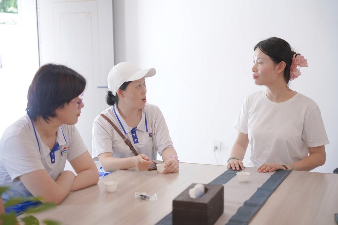 图为实践团成员与负责人交流 张振宇 供图