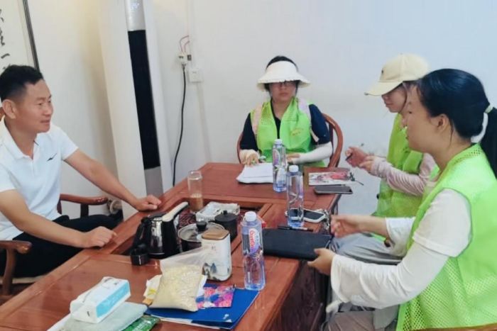 图为队员们正在采访润泽牧业总经理。郑子涵 供图