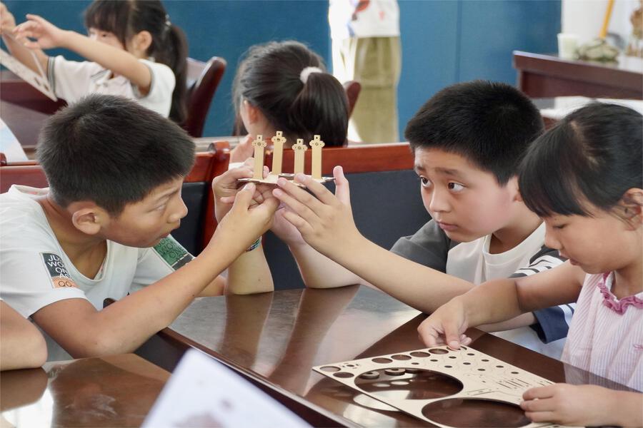 实践队以教育帮扶与文化传承双轨并进,构建起“安全+文化+学业”三维帮扶体系。安全教育课上,孩子们在众多案例中学习避险小知识;趣味榫卯积木拼装环节,孩子们在动手实践中感悟古建筑智慧;红色教育课上,孩子们在钱学森归国事迹和少年英雄故事中厚植家国情怀。捐赠的400余册图书和100余套文具,搭配艺术课、学业辅导等特色活动,契合孩童成长所需。这场盛夏之约,是青春与乡土的双向奔赴,智慧与童心的美好碰撞,深刻诠释了青年学子服务乡村振兴的使命担当,其点燃的火种必将照亮孩子们的前行之路。