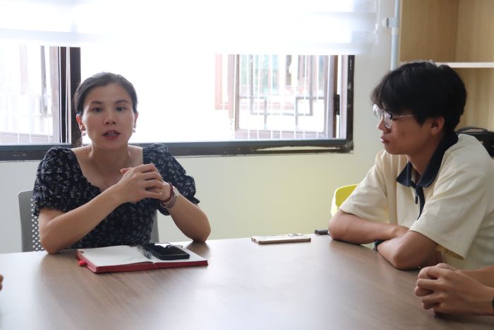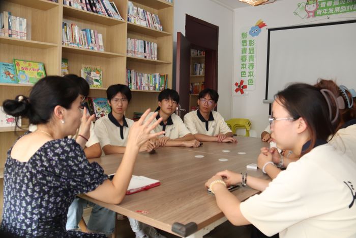 实践队利用上午时间,与龙井村文化运营管理有限公司负责人杨梅就乡村振兴与铸牢中华民族共同体意识的相关问题进行座谈。杨梅介绍,龙井村是典型的少数民族聚集村,村中百分之八十的居民为布依族。在当地近几十年的发展中,龙井村的村委会以商品经济为支撑,建设出食坊、宿坊和手工坊等经济模式,将布依文化融入各个坊中,将民族文化向外宣传,提高当地的经济收入,从而留住青年工作者,实现当地经济良性循环。