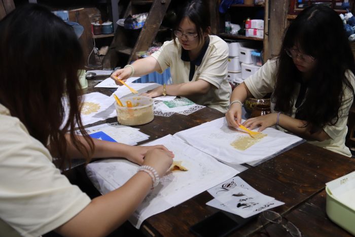 队员体验非遗豆染技艺