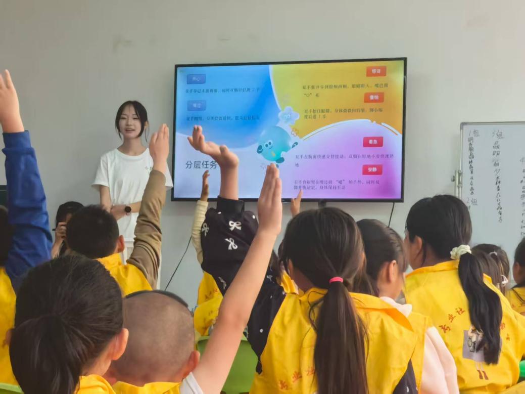 东川团队聚焦“拼音与成语”两大基础板块,为学生搭建普通话学习的“阶梯”。志愿者先通过儿歌、动画等形式,帮助低年级学生巩固汉语拼音的认读与书写;对高年级学生,则结合“成语故事”讲解,让他们在“守株待兔”“画龙点睛”等典故中,既掌握词语发音,又理解文化内涵。课堂上讨论声交织,让普通话学习与文化传承自然融合。