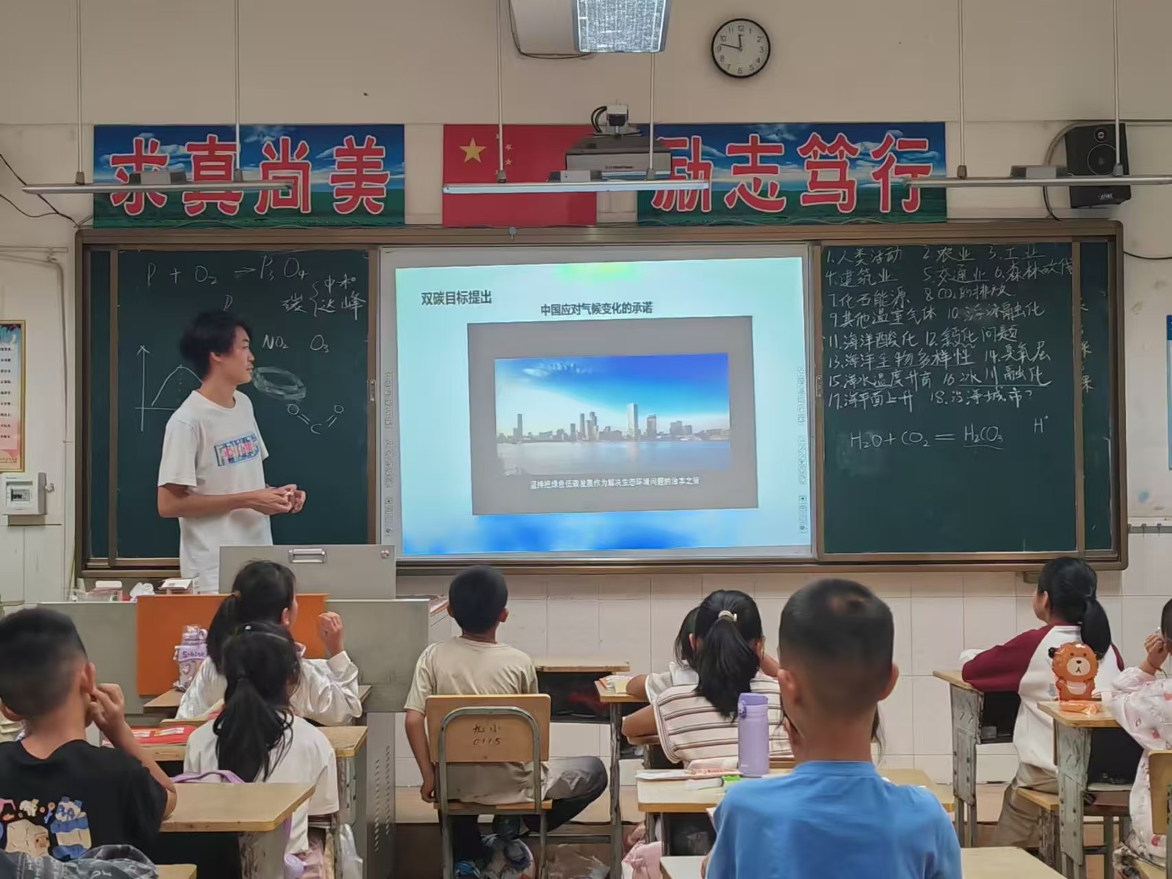 蒙自点位 20 名志愿者为 165 名学生设计 308 课时 “沉浸式课堂”。他们带着孩子们来到稻田边,讲解水稻与杂草、害虫与益虫之间的关系,让孩子们明白生态平衡的重要性。在美食文化课上,志愿者们从水稻讲到米饭,从玉米讲到爆米花,让孩子们了解家乡美食背后的故事。实验室里,志愿者们带领孩子们做环保小实验,比如用废报纸制作再生纸,用小苏打和白醋模拟火山喷发了解化学反应。通过这些实验,孩子们明白了垃圾分类和资源回收的意义,并一起讨论出适合乡村的垃圾分类方案,如用不同颜色的垃圾桶区分可回收物和不可回收物,让科学精神真正扎根乡土。