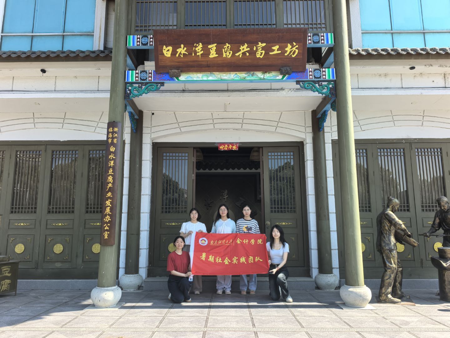 7月29日,南京财经大学会计学院“青力青为,浙里共富”暑期社会实践团队走进浙江省台州市白水洋镇,深入探访白水洋豆腐共富工坊。这场集乡村振兴,共同富裕与创新学习于一体的实践活动,不仅学习传播了共富工坊的致富经验,更成为了大学生践行社会责任,赋能乡村振兴的生动实践。
