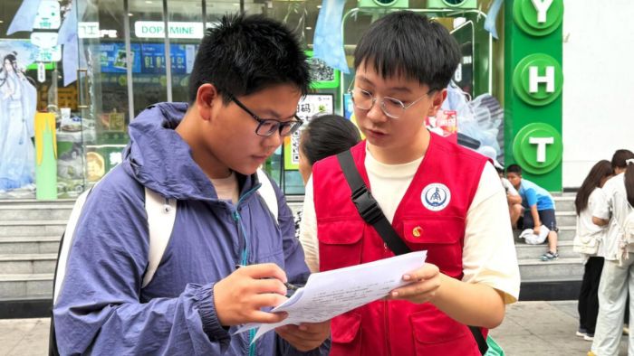 图为实践队员进行问卷调查 通讯员杜宣纬 摄
