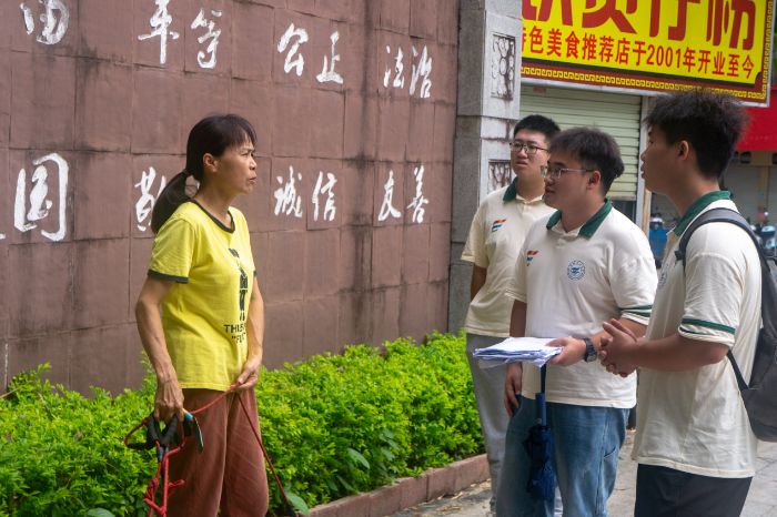 图为绿色发展倡导团成员进行问卷调查(通讯员陈乐乐摄)