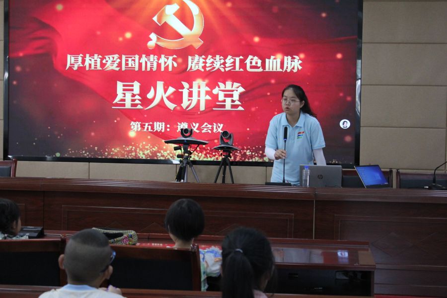图为实践团成员讲授党史知识。彭艺摄