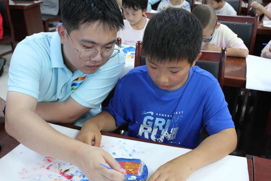 多元课程,丰实素养。实践团科普宣讲小老师的“星火讲堂”上,红色文化缓缓流淌。“两弹一星”精神娓娓道来,老一辈科学家的奉献故事让孩子们眼神里盛满敬佩;“和美育人”石头绘画课上,质朴的石头在孩子们的笔下褪去粗粝、焕发新生——五星红旗迎风展、小动物憨态可掬、风景画色彩明丽,童真的创造力在斑斓色彩中炽热飞扬,每一笔都是对世界的独特想象。