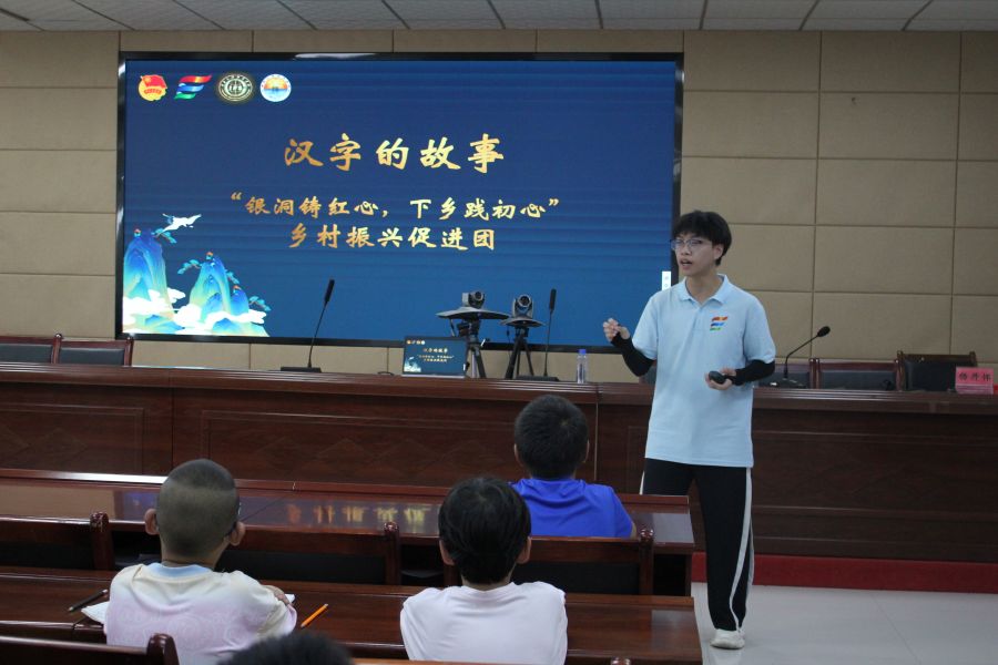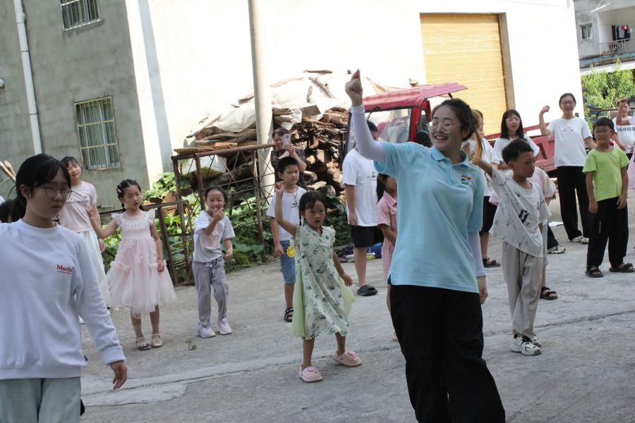 暖心乡村,支教同行。清晨的广场上,舞蹈课率先唤醒了沉睡的社区。孩子们跟着实践团舞蹈小老师的节奏伸展、跳跃,汗水浸湿了衣衫,眼里的兴奋却像晨露般晶莹,艺术的活力在舞步中悄悄绽放。紧接着,实践团文学小老师带来的“汉字的故事”课堂里,“日”“月”等象形字的演变通过图片与故事变得鲜活可触,猜甲骨文游戏里,孩子们争相举手、踊跃发言,对汉字的热爱在一来一往中愈发浓厚。