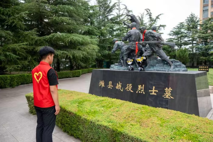 活动最后,队员们怀着无比崇敬的心情走进潍坊市烈士陵园。大家肃立于烈士墓区和抗美援朝革命烈士墓前,向为民族独立、人民解放和国家富强英勇献身的革命先烈鞠躬致敬,寄托哀思。在庄严肃穆的氛围感召下,队员们自发清理了纪念碑周围的落叶杂物,以实际行动表达对先烈的深切缅怀和继承先烈遗志、传承红色基因的坚定决心。