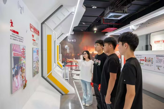 跟随刘老的记忆足迹,团队来到潍坊市人民防空宣传教育馆进行参观学习。在讲解员的引导下,队员们依次参观了“护民之盾”、“防空史话”、“人防知识”等主题展区。通过丰富的实物展陈、详实的影像资料和沉浸式的互动体验,大家系统了解了我国人民防空事业的发展历程、辉煌成就及其在守护人民安全、保卫国家主权中的重大战略意义。这堂生动的国防教育课,有效提升了队员们的国家安全意识和防灾避险能力。
