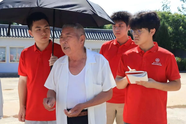 图为实践队成员采访胡特庸烈士陵园守陵人孟金开。康凌晨 供图