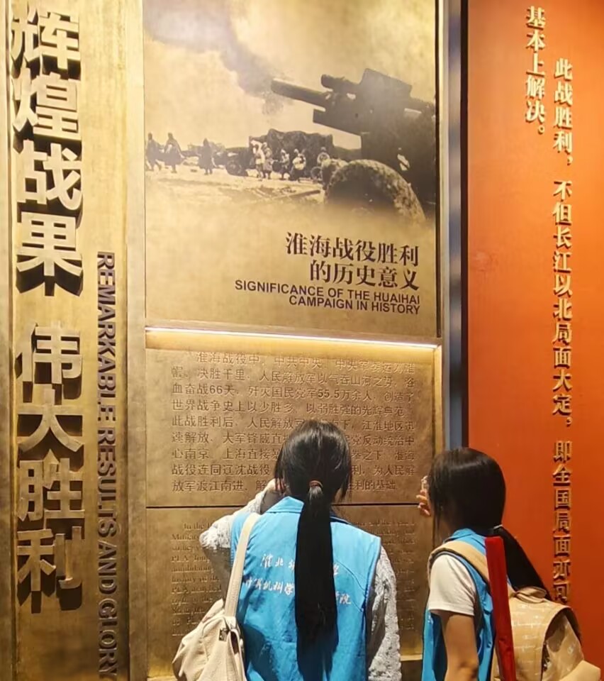 随着参观的深入,实践团来到了战役胜利展区,这里展示了淮海战役胜利的伟大意义和深远影响。成员们了解到,淮海战役的胜利,不仅使长江以北的华东、中原地区基本上获得解放,为解放军渡江作战创造了有利条件,更在战略上、士气上对国民党军造成了沉重打击。这场胜利,是人民解放军在战略上的重大胜利,更是人民群众大力支援的结果,体现了人民战争的伟大力量。