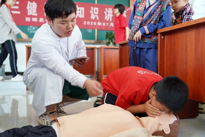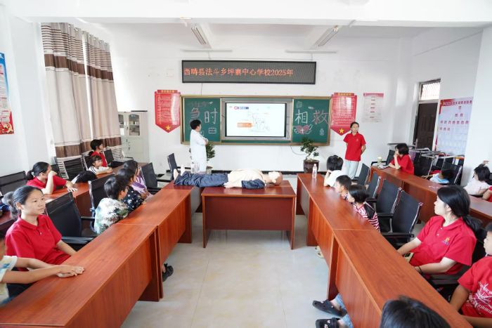 2025年8月3日厦门大学嘉庚学院西部梦想社团云南向日葵队有幸邀请到当地卫生所的周帮权医生,在云南省文山州西畴县坪寨CPA春蕾小学开展了“急”时守护,“救”在身边的主题活动,周帮权医生表示开展这样的急救知识课程,是希望从小培养孩子们的安全意识和急救能力,让“急救种子”在校园里生根发芽,为孩子们的安全成长保驾护航。