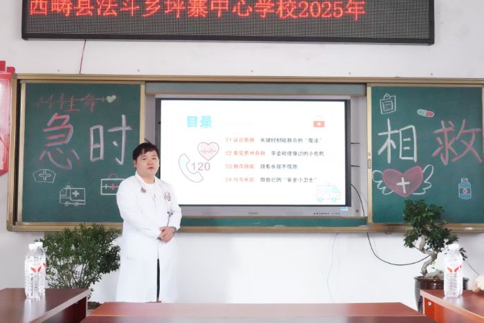 伊始,周帮权医生用生动的案例引入,像扭伤、摔伤、吃东西卡喉咙这些生活里常见的意外情况,一下子抓住了同学们的注意力。学生们跟着医生的讲解,了解到当有人突然受伤或生病,在医生赶来前给予的紧急帮助就是“急救”,正确的急救不仅能减轻痛苦,甚至能挽救生命。
