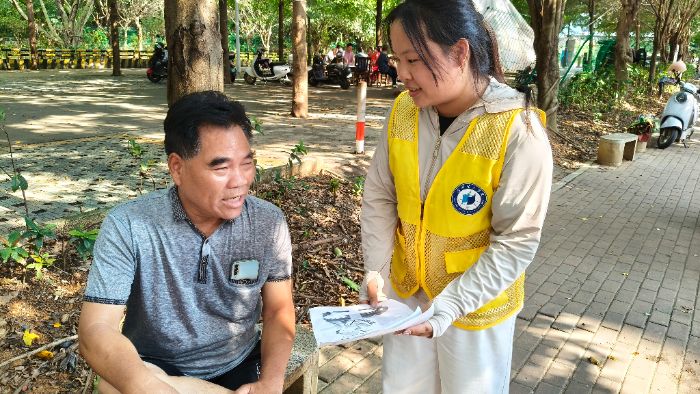 图为团队成员向群众宣传推广普通话 席雯涛供图