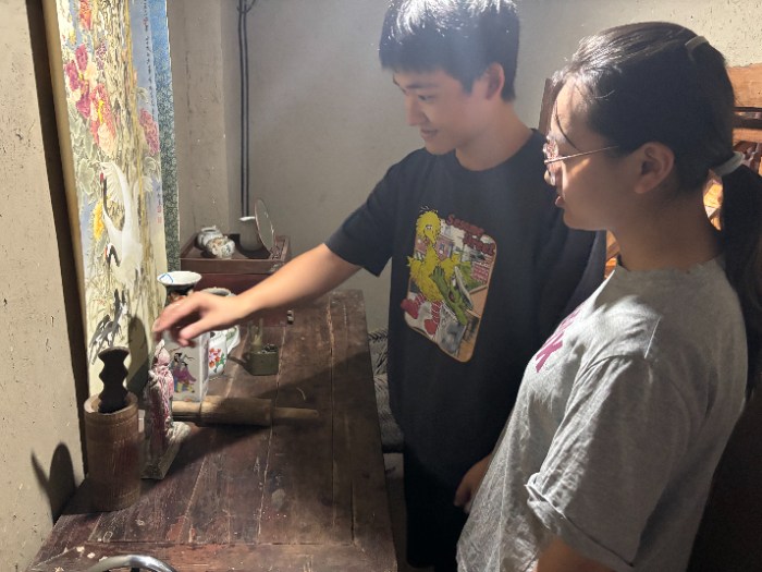 图为团队成员参观如皋市平园池村农耕民俗文化馆。(多彩大学生网通讯员 张升鹤摄)
