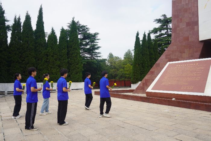 仪式结束后,团队成员分组开展墓碑祭扫活动。在烈士墓区,大家仔细擦拭墓碑上的浮尘,清理周边杂草,为每座墓碑献上小白花。一名队员轻声念着墓碑上的文字,语气中满是敬意,“正是无数这样年轻的生命,换来了我们今天的幸福生活。”