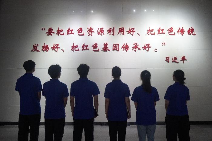 默哀仪式结束后,团队成员步入革命烈士事迹陈列馆。首先映入眼帘的便是习近平总书记的谆谆教诲:"要把红色资源利用好,把红色传统发扬好,把红色基因传承好。"这句掷地有声的话语,为整个参观活动定下了基调。展馆内,一件件珍贵的革命文物静静诉说着那段烽火岁月:锈迹斑斑的军号仿佛还在回荡着冲锋的号角,泛黄的战地日记记录着战士们的赤子之心,破损的党员证见证着共产党人的坚定信仰。我们触摸历史褶皱,听见游天洋振臂疾呼铁路工人的觉醒,看见张自安在暗夜中传递星火的坚毅。