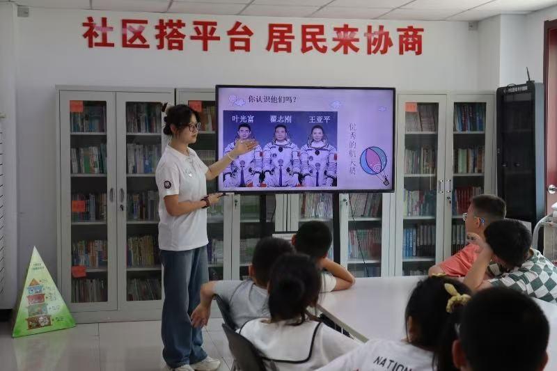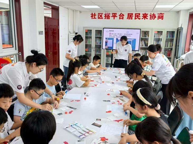 图为儿童在实践团成员引导下制作火箭。“星语心寰”实践团摄