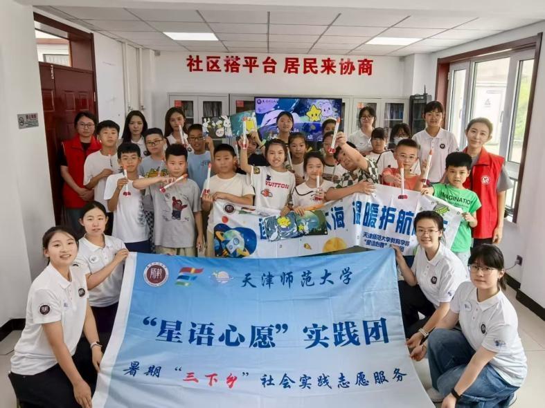 七月的乡野,风携着麦浪的清香掠过田埂,2025年7月9日,天津师范大学“星语心寰”护航实践团的成员们带着纸筒、尾翼与满腔热忱在此集结。一场以“气动火箭”为载体的科学启蒙活动,正以趣味实践为笔,在孩子们心中播撒航天梦想的种子,让科学的微光在乡野间悄然绽放。